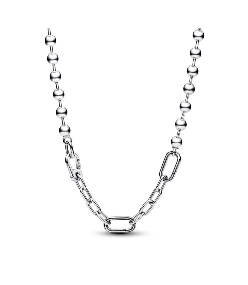 Collar Pandora ME Eslabones Link y Cuentas Metálicas, elaborado en plata de ley, combinando dos estilos esenciales como las esferas metálicas y los eslabones de la cadena, este collar se puede personalizar embelleciendo los eslabones con mini charms colgantes o charms de medallones.