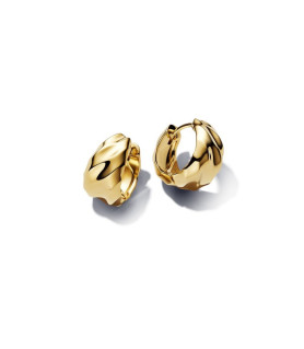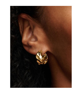 Pendientes de botón en con un recubrimiento en oro de 14k Círculo Forma Orgánica y Perla Cultivada de Agua Dulce, cada pendiente tiene cuatro perlas cultivadas de agua dulce tratadas a lo largo de un tercio del óvalo de forma orgánica y ligeramente torcido con un recubrimiento en oro de 14k de grosor variable. Cada perla cultivada de agua dulce tratada es única y puede variar en tamaño y color.