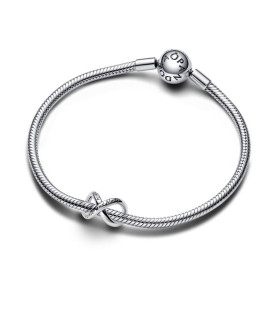 Charm en plata de ley Infinito Para Siempre, un diseño único acabado a mano en plata de primera ley, captura el espíritu perdurable de la familia, que se refleja a través de dos palabras grabadas, "Family" y "Forever and Always" (Familia y Por Siempre y Para Siempre, en español, respectivamente).