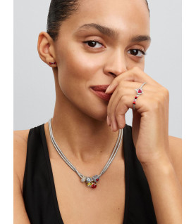 Pendientes de botón en plata de primera ley Lazo Blancanieves de Disney, con motivo de un lazo con esmalte en color rojo adornado con un cristal artificial en color rosa.
