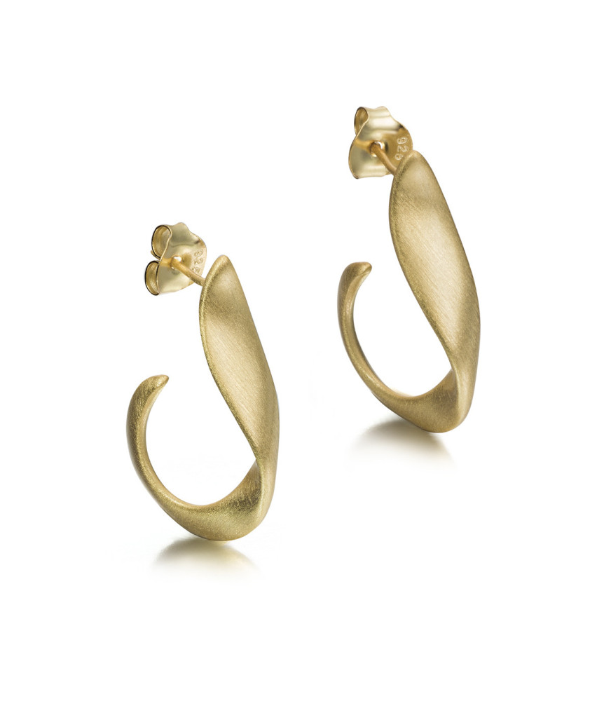 Pendientes Love de Jorge Revilla PE120-4989/OM, en plata de ley de 925 milésimas con baño de oro amarillo de 18 quilates, acabado en brillo, tipo aro abierto y retorcido plano.
