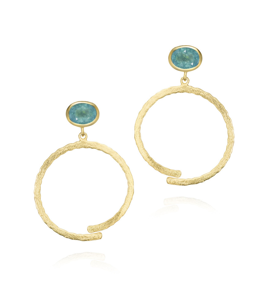 Pendientes Pure de Jorge Revilla PE129-66/APO, en plata de ley de 925 milésimas con baño de oro amarillo de 18 quilates, acabado matizado y apatita en la parte superior.