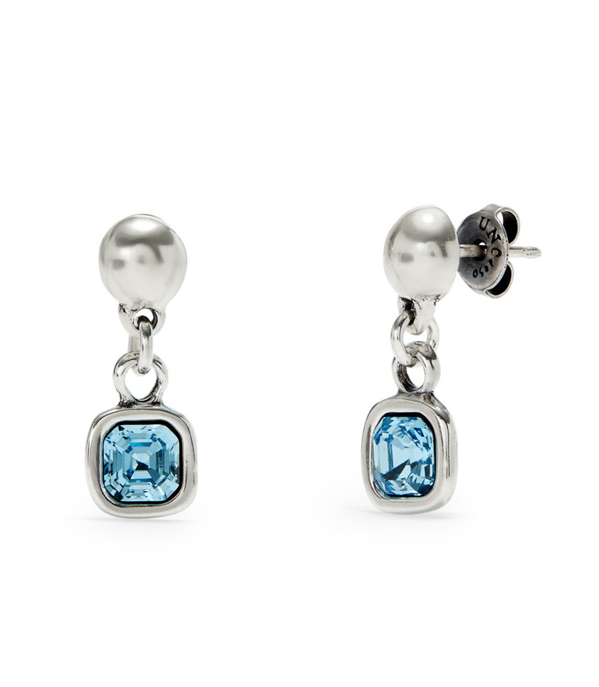 Pendientes Ser Expresiva UNOde50 PEN0998AZCMTL0U, hechos en metal bañado en plata de ley, con cristal facetado colgante azul claro.