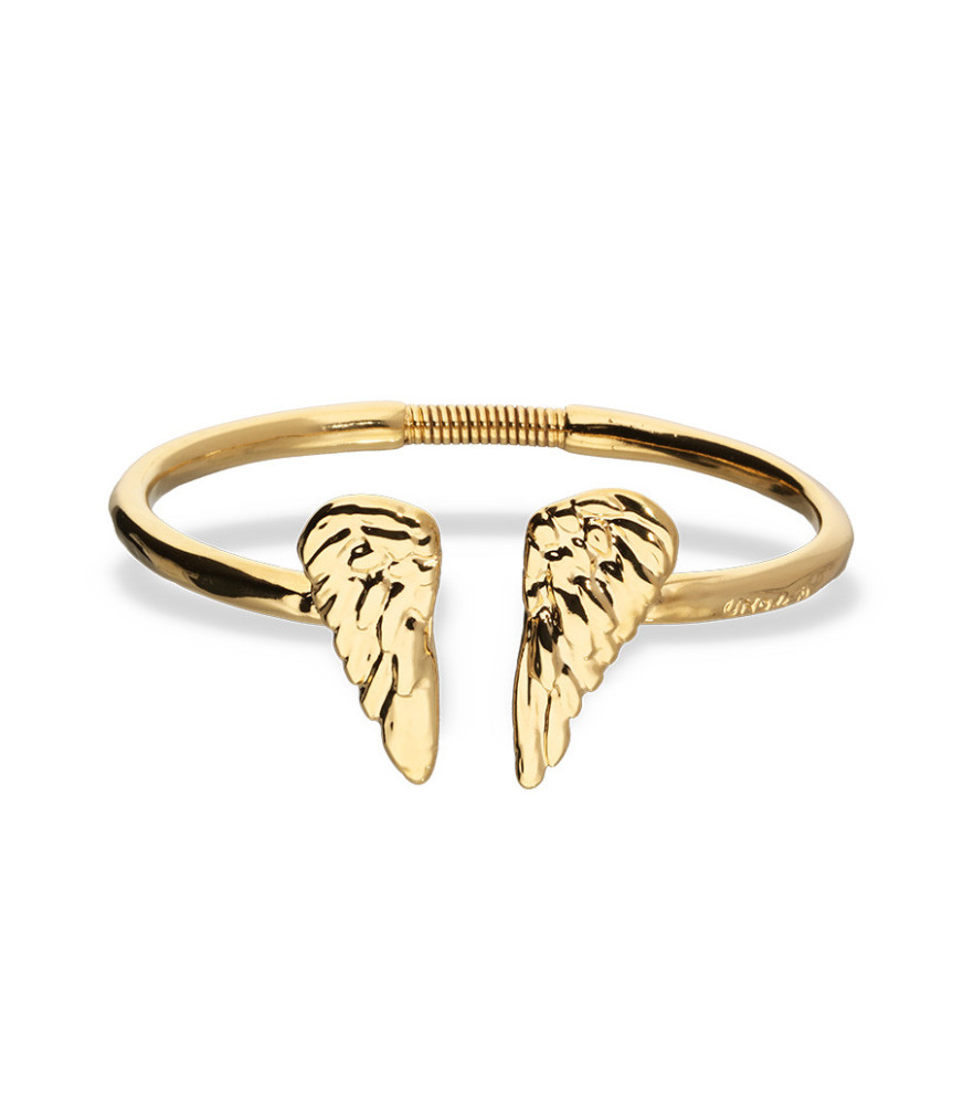 Pulsera Ser Invencible UNOde50 PUL2602ORO0000, esta pulsera rígida, con acabado dorado, presenta dos alas enfrentadas que simbolizan el poder de superarse y avanzar con determinación.