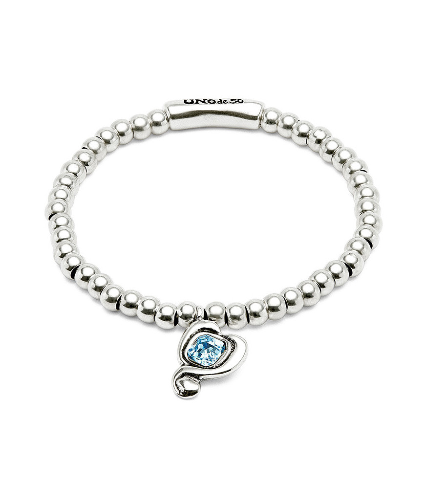 Pulsera Ser Expresiva Exc UNOde50 PUL2514AZCMTL0, pulsera de bolas bañadas en plata de ley con cristal facetado azul claro.