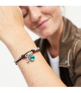 Pulsera Ser Fascinante UNOde50 PUL2529VRDMTL0, pulsera de bolas bañadas en plata de ley con cristal de murano verde.