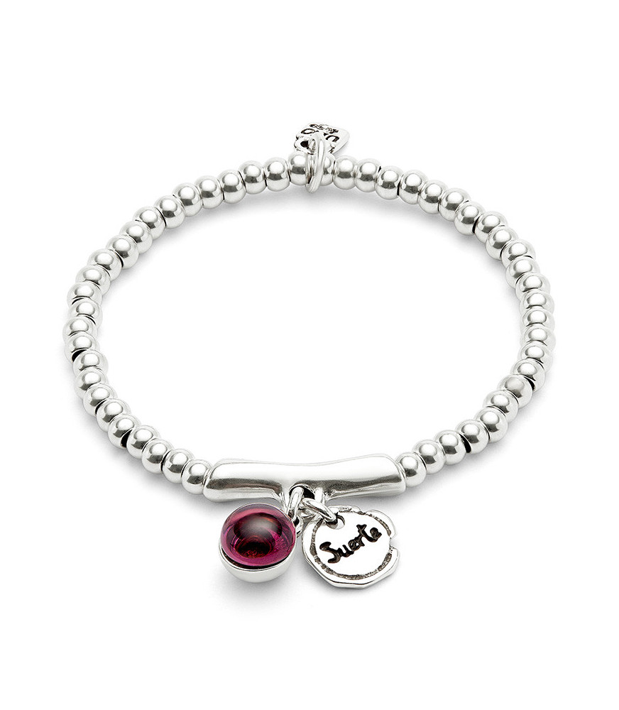 Pulsera Ser Fascinante UNOde50 PUL2535VRDMTL0, pulsera bañada en plata de ley, cristal de murano y palabra suerte.