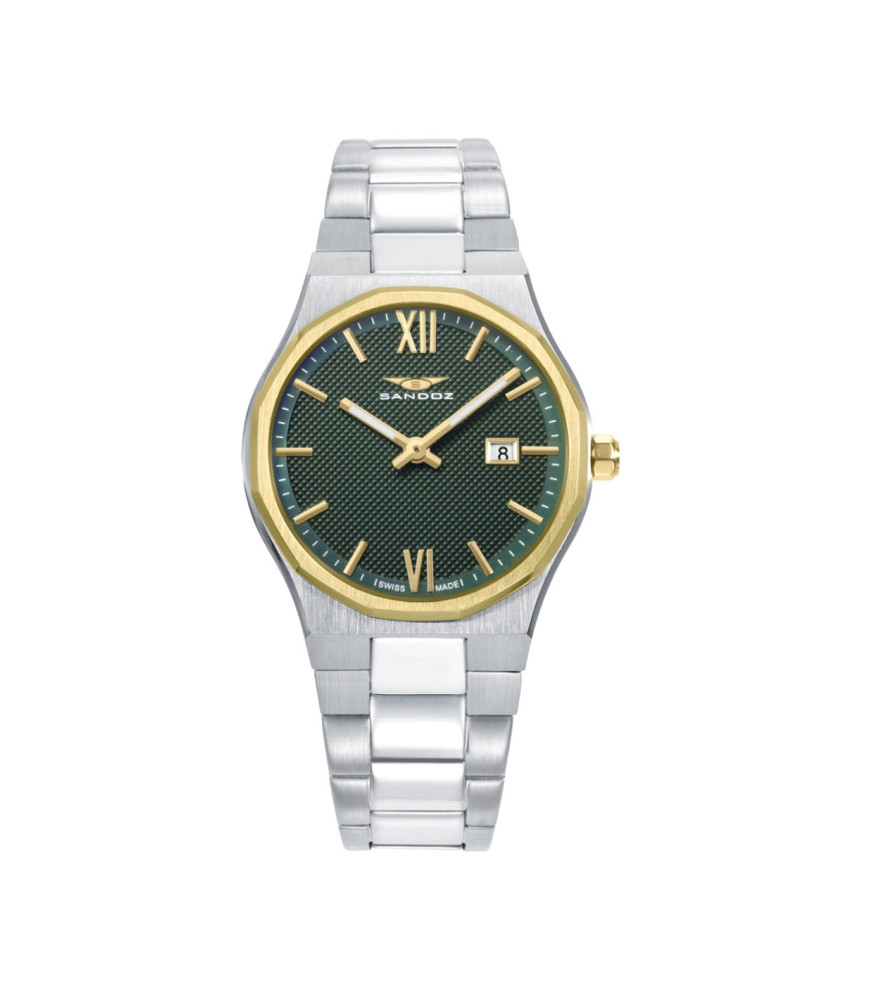 Este reloj de mujer es la elección perfecta para quienes buscan un toque de distinción y glamour en cada detalle. La caja de acero extraplana con bisel IP dorado y cristal de zafiro refleja lujo y durabilidad, creando un equilibrio perfecto entre estilo y resistencia. La sofisticada esfera verde destaca por su elegancia, complementada con índices y agujas en color dorado, que le otorgan un brillo sutil y encantador. Su brazalete de acero asegura un ajuste cómodo y firme, fusionando a la perfección diseño y funcionalidad. Ideal para quienes aprecian el refinamiento, este reloj es más que un accesorio: es una declaración de estilo. En Sandoz, creamos piezas pensadas para brillar en cada ocasión.