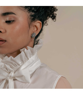 Anillo de plata envejecida con brazo de 2,8 mm. de ancho con cabujón facetado central oval de 10x14 mm de turmalina rosa acompañado de circonitas brown talla brillante.