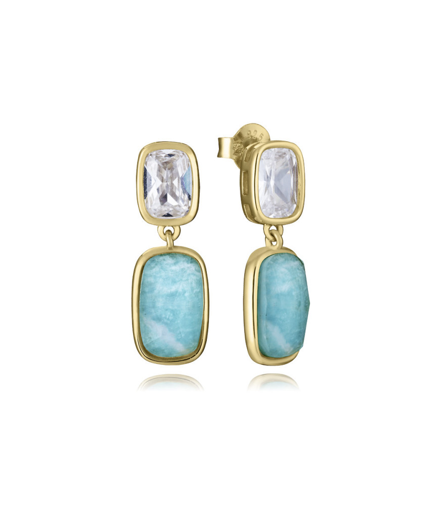 Pendientes Viceroy Mujer 2341E100-49, en plata de primera ley con un delicado baño de oro, están adornados con piedras naturales doblete de amazonita y cristal, enmarcadas por el brillo sofisticado de circonitas blancas. La amazonita, con sus tonalidades azul verdosas, evoca calma, equilibrio y conexión con la naturaleza, mientras que el dorado añade un aire cálido y elegante. Con un largo de 2,2 cm, ofrecen la medida ideal para iluminar el rostro con un toque de distinción.
