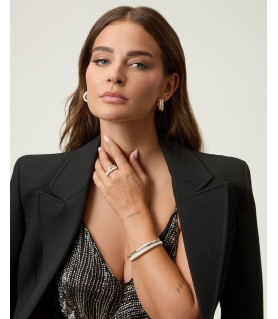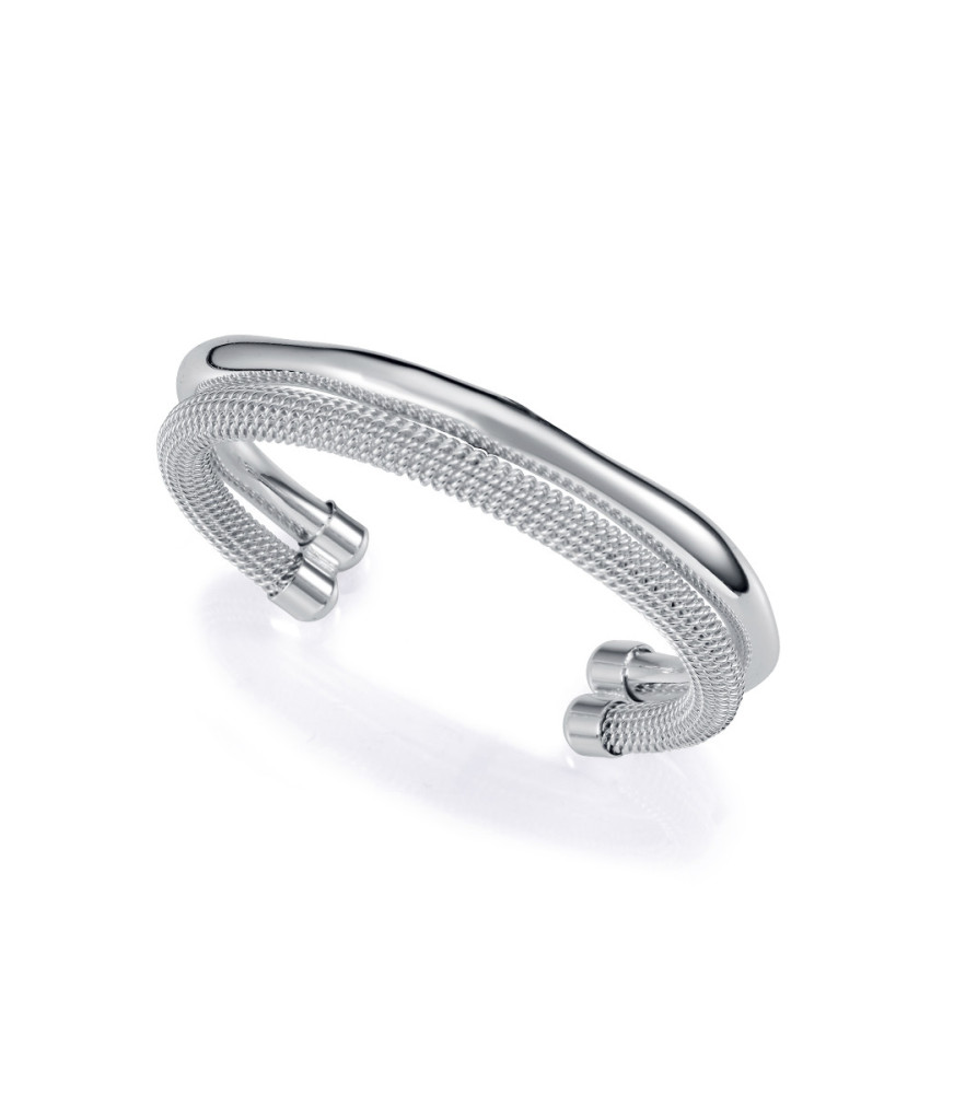 Pulsera Viceroy Mujer 14346P01000, rígida, abierta, doble, en acero chapado en plata 999, una lisa y otra con textura trenzada, como una malla.